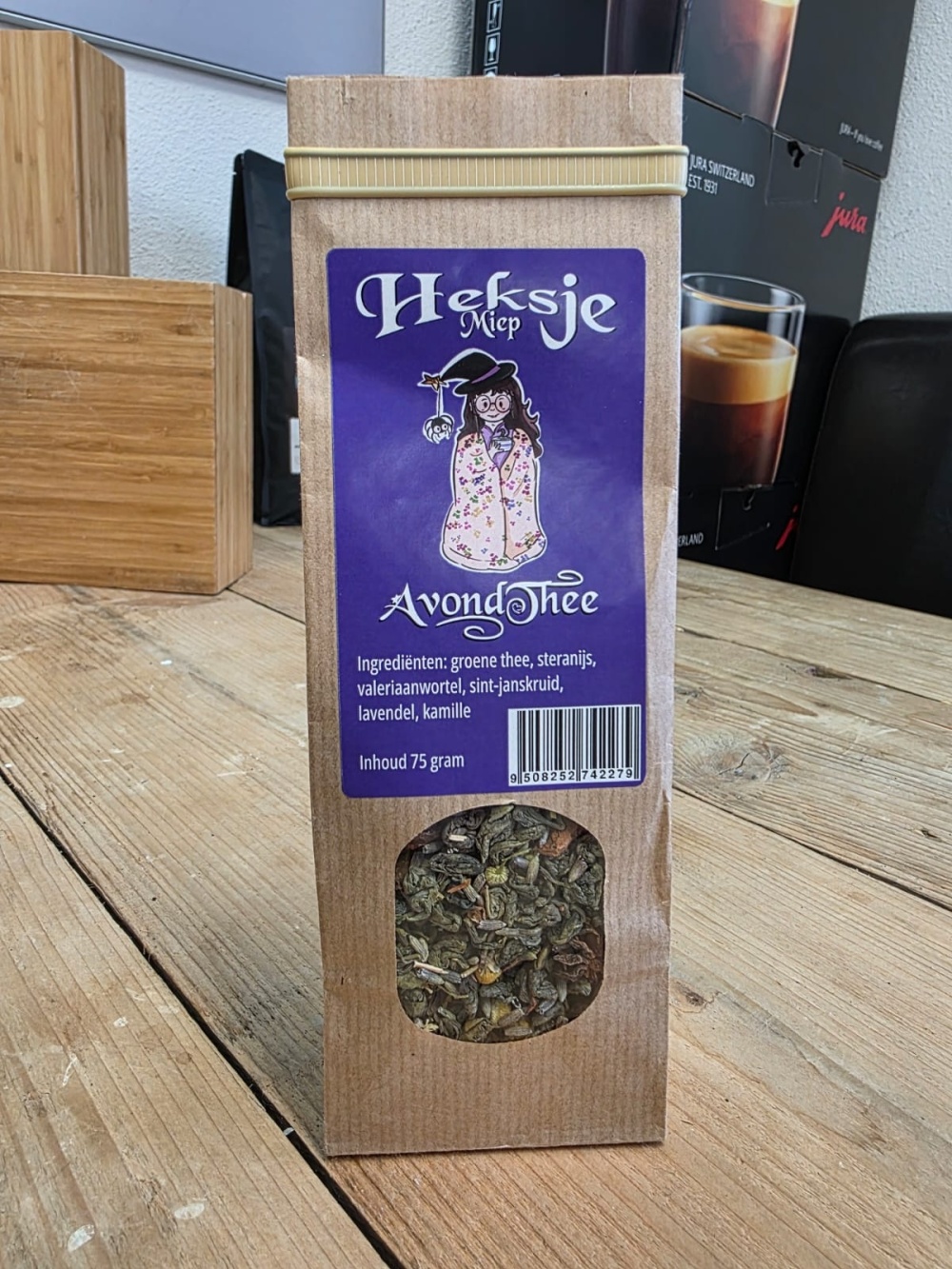Wanneer de maan langzaam aan de hemel verschijnt en de wereld om je heen tot rust komt, roert Heksje Miep een kalmerend drankje in haar ketel. Deze AvondThee is een zachte, geurige mix van groene thee, steranijs, valeriaanwortel, sint-janskruid, lavendel en kamille — precies wat je nodig hebt om de dag sereen af te sluiten.